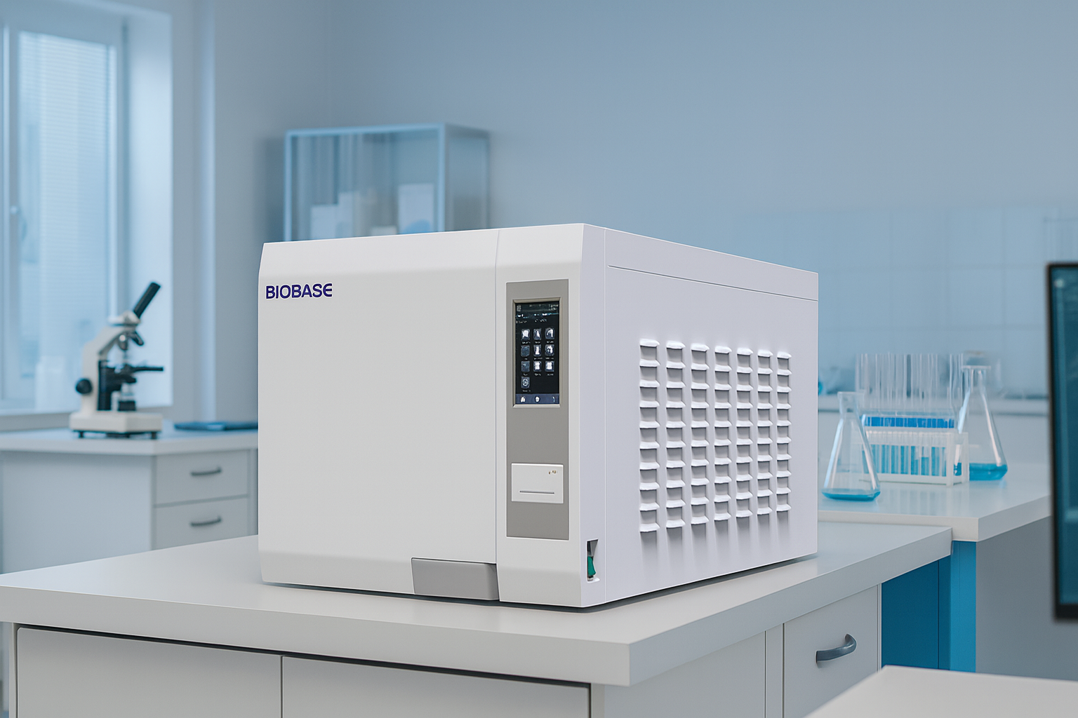 7. Dispositivo de registro: El equipo está equipado con una impresora térmica y una interfaz USB como estándar, que puede registrar los datos de todo el proceso de esterilización en tiempo real.