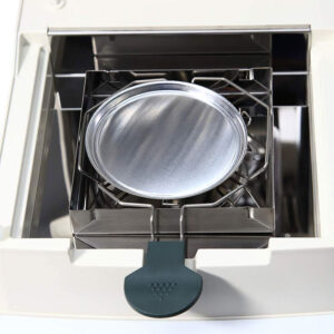 Con la mesa antivibratoria puede trabajarse de forma ergonómica y cómoda. La entrada en la parte delantera de la mesa ofrece suficiente espacio para que pueda sentarse el operario de la balanza sin tocar la mesa antivibratoria